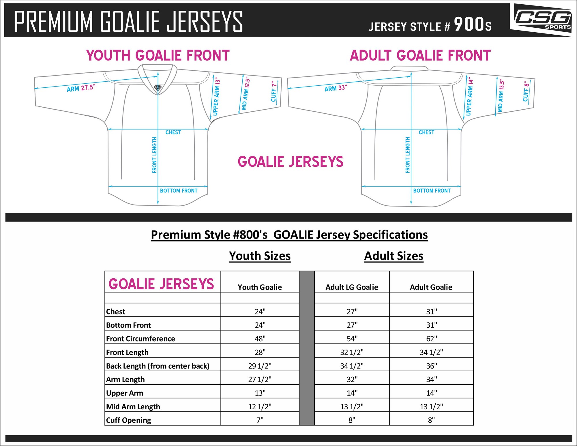 Goalie Jersey Sizing