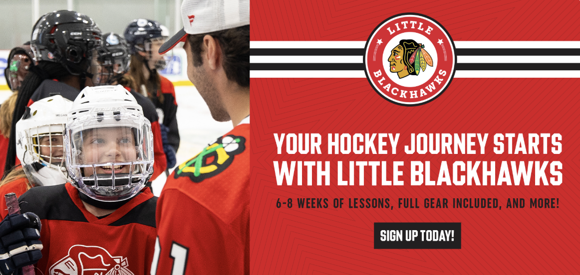 The Little Blackhawks program includes 6-8 weeks of lessons at the Kenosha Ice Arena and a full set of equipment!The registration fee of $298 includes: